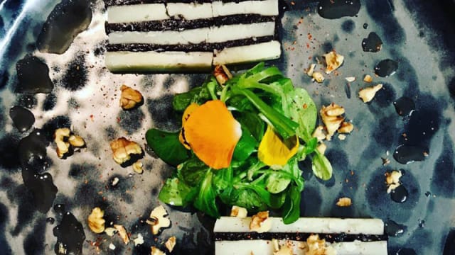 9/10Absolutely sublime food with its light basque influence. Perfect for a hot summer’s day. The roadside outdoor space was really atmospheric as we watched village life walk by (and almost no traffic). The service while helpful and friendly was very slow so I have marked it down but this absolutely shouldn’t put you off booking. Just slow down a touch! We had mixed salad and foie gras with rhubarb off signature dishes (each excellent) followed by two orders of bacalao. Amazing! The amuse bouches and mignardises were sublime. Will definitely return!