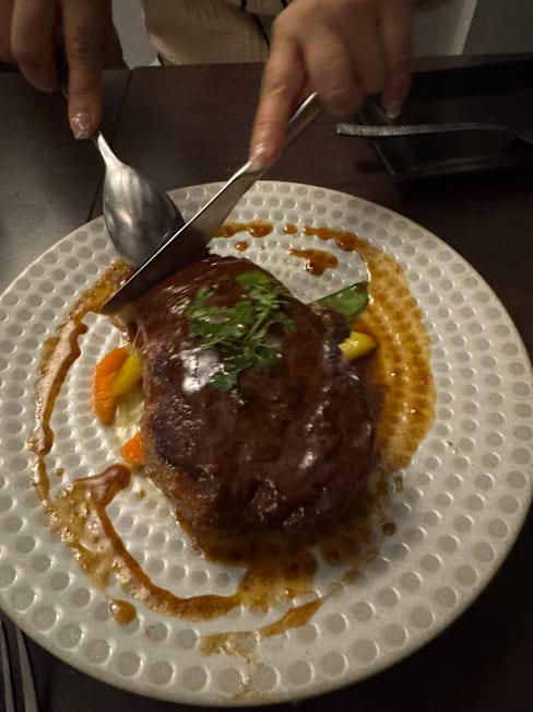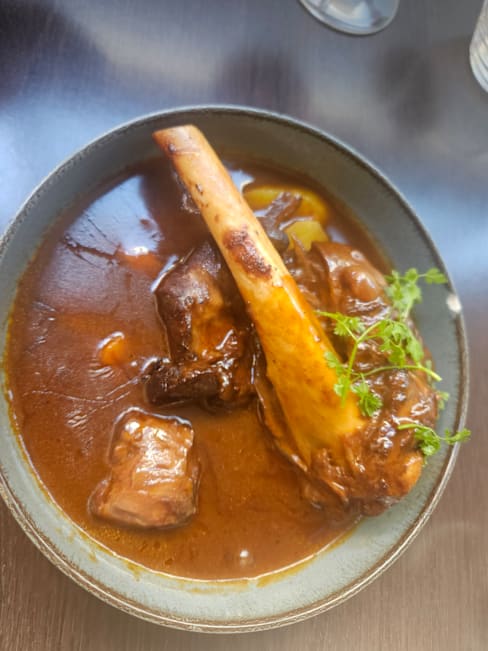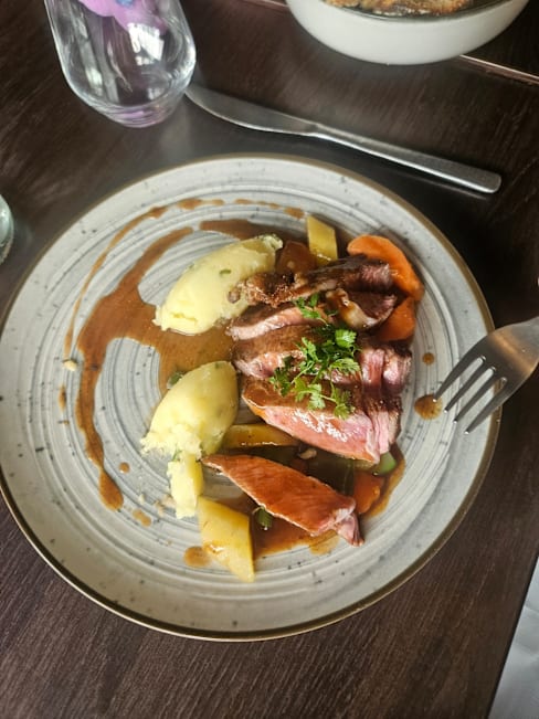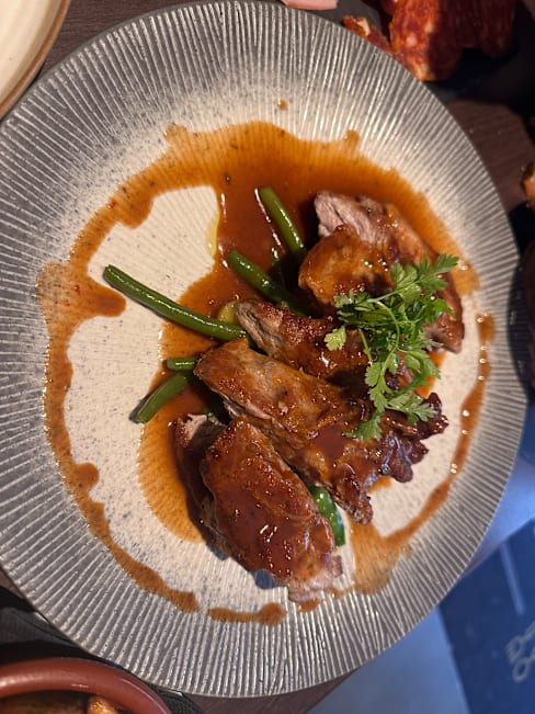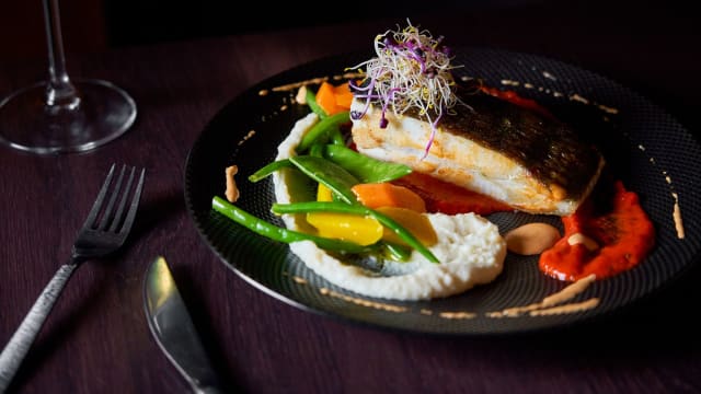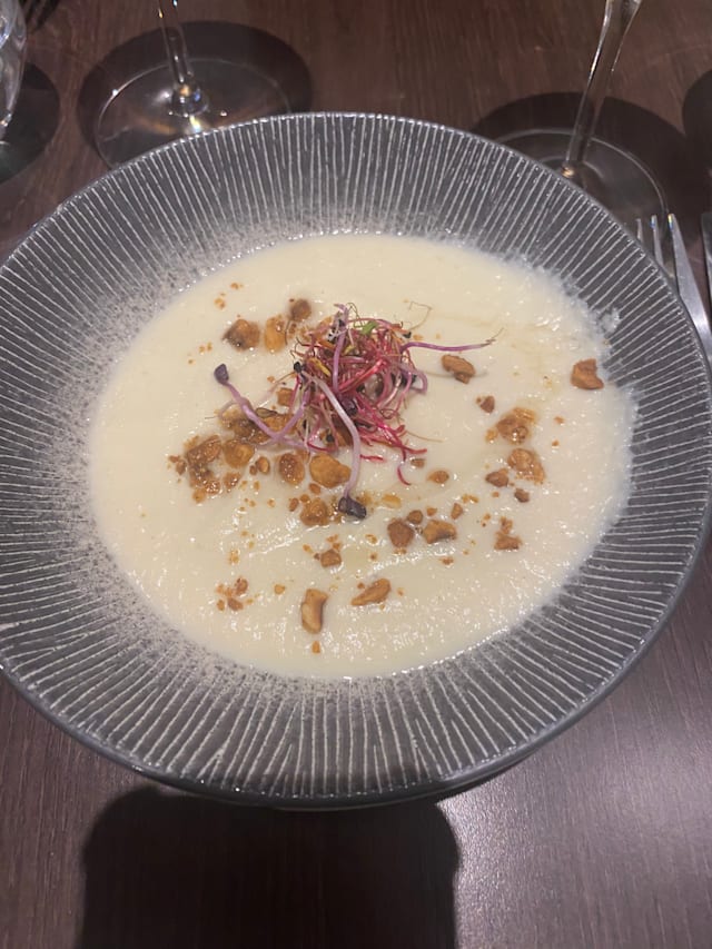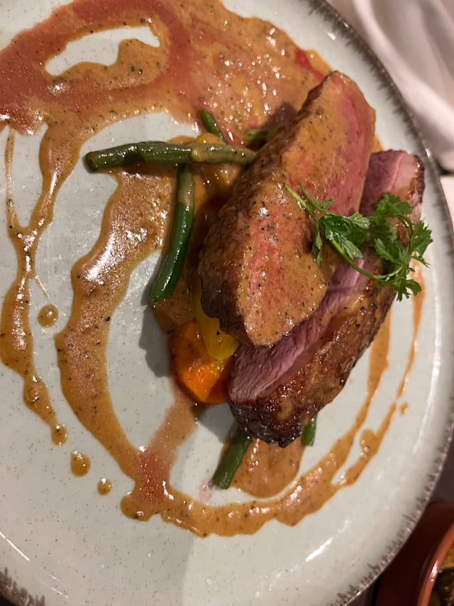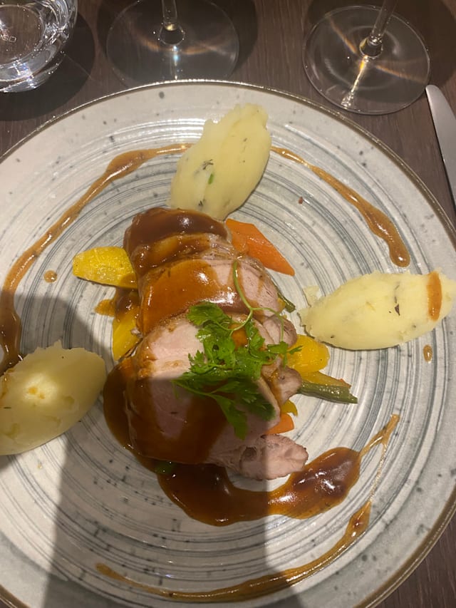 3.5/10This place is trying to be a fine dining and modern but unfortunately, it's not working out well. no physical menu - you have to scan QR code and order online but positions are very poorly translated from French to English. We asked for recommendations and ordered 2 different 'chef's specials'. Both meat options were dry and served in the exact same way on the exact same sides even topped with the same gravy. I would be very disappointed if I had to pay full price for this dinner. But even with thier discount, you can find many better options around for less money. Most of the time we spent there, we couldn't stop thinking that Paul Bocuse would turn in his grave if he saw his face on that wall... The place is cold and dreary.