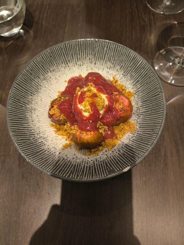 Onglet de veau, stracciatella pistache et parmesan