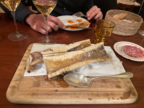 9/10L'Atelier seems to be very popular with the expat crowd judging by the folks who arrived for dinner on the Sunday we went there for my birthday. No worries! The service couldn't have been more attentive every step of the way, which has generally been my experience returning to Paris after an 11 year hiatus. No one seems to hesitate to speak English to us poor folks who never studied French. I ordered the steak au poivre but it didn't come with the typical creamy black peppercorn sauce that I was anticipating. Instead just a brown gravy with some green peppercorns, which was good for the French fries l, but not that impressive or peppery for a place that boasts about serving the French classics. Still my bone marrow appetizer and the cafe gourmand with the trio of mousse, creme brulee, and fresh fruit more than made up for everything. Plus the ambience was so cozy and warm!