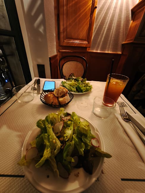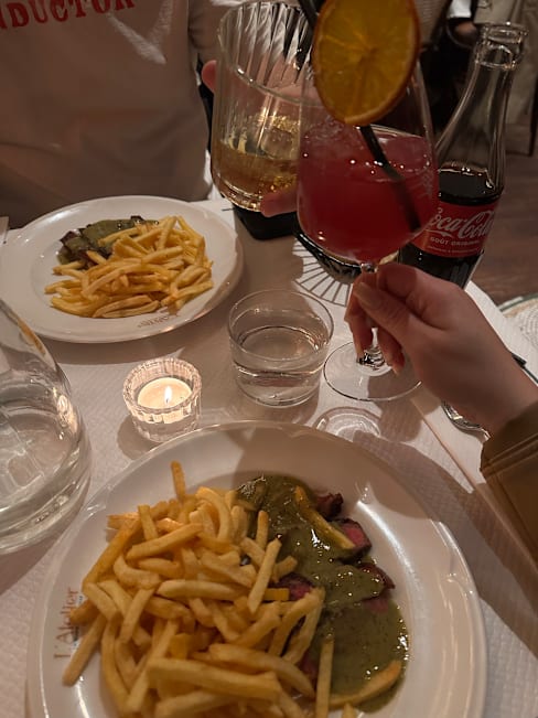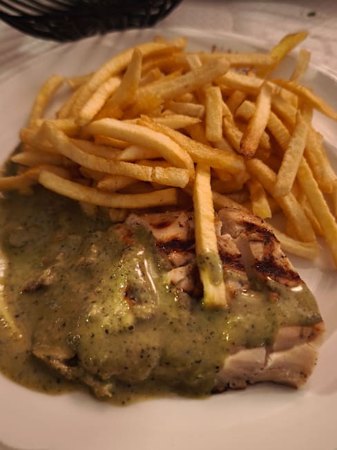 9.5/10We really enjoyed this. Although we were confused going in about what our discount through the fork would actually be, as my default is states “set menus not included” but this restaurant only operates on a Set Menu. So it was good to see that we did get the discount off of it, which was incredible. MOST IMPORTANTLY The sauce is NUT ALLERGY FRIENDLY, which isn’t always the case with these places. We were sat upstairs and it was beautiful. We got one chicken and one steak, which I highly recommend for some variety. The Crème Brûlée and hot chocolate were perfect for dessert. And we also got a bottle of wine. After our plates were empty they topped up our meat and chips, which we loved. The service was slower than typical western pace, but it was pretty standard for France. They were also seemingly understaffed, so nothing that ruined our time. One of our favourite dinners on our trip. Would 100% recommend if you want the traditional steak and frites experience.