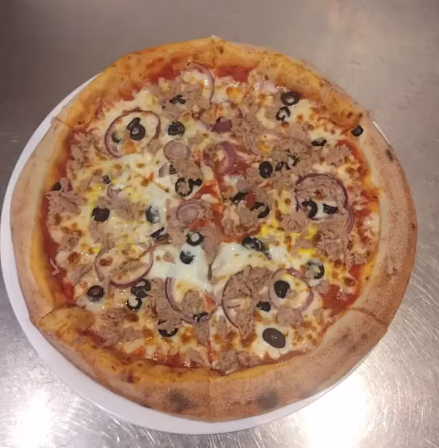 - Sauce tomate, mozzarella, thon, oeufs, oignons, olives