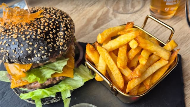 La planche est composée d’entrecôte, de côte de veau, de côte de bœuf, de merguez, de magret de canard, de poulet pané, d’os à moelle et ribs de bœuf. Accompagnement, sauce au choix