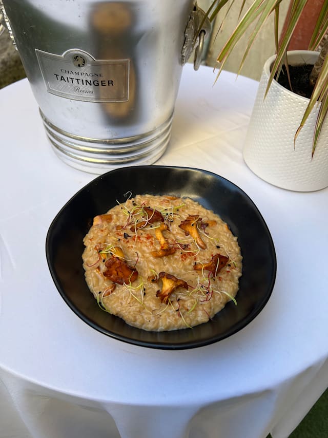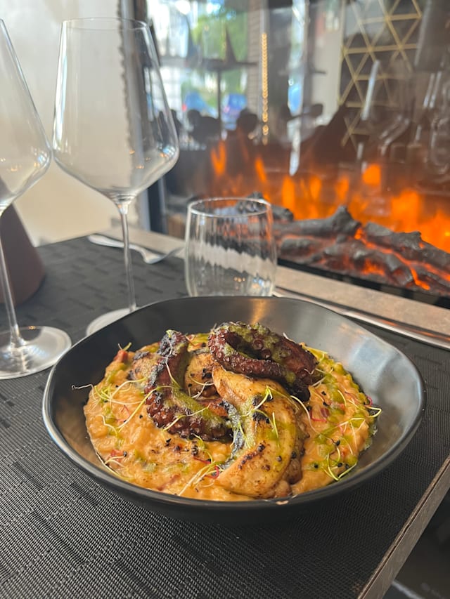 Poulpe et risotto crémenx au chorizo, persillade parfumée