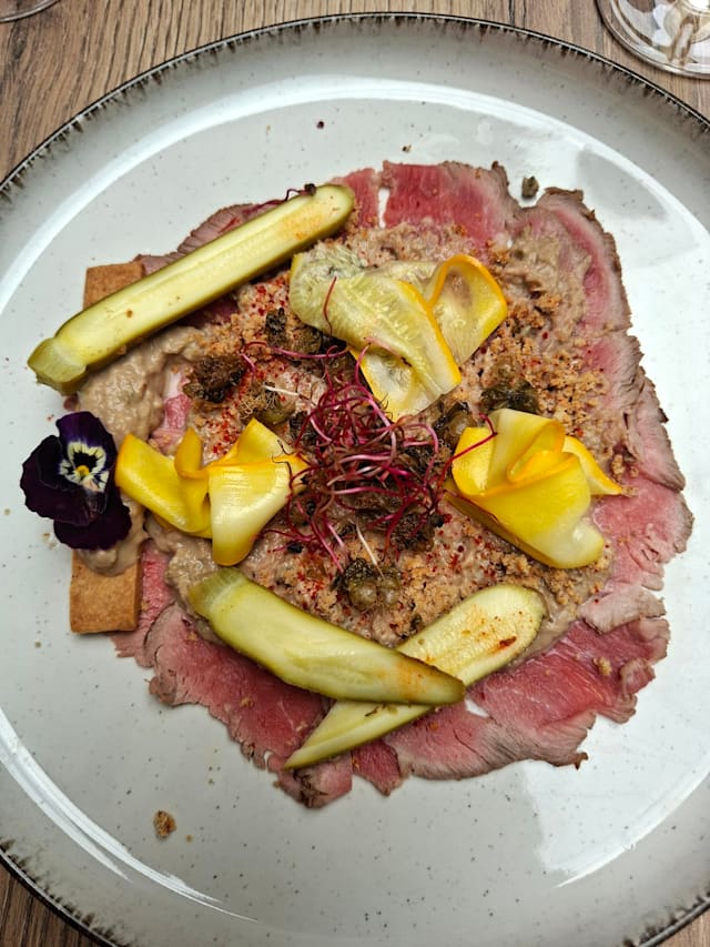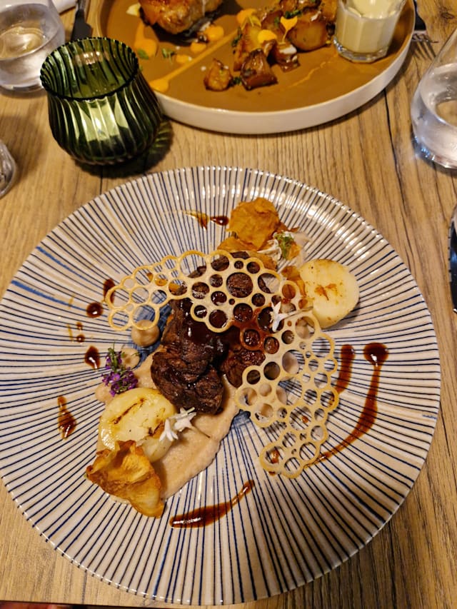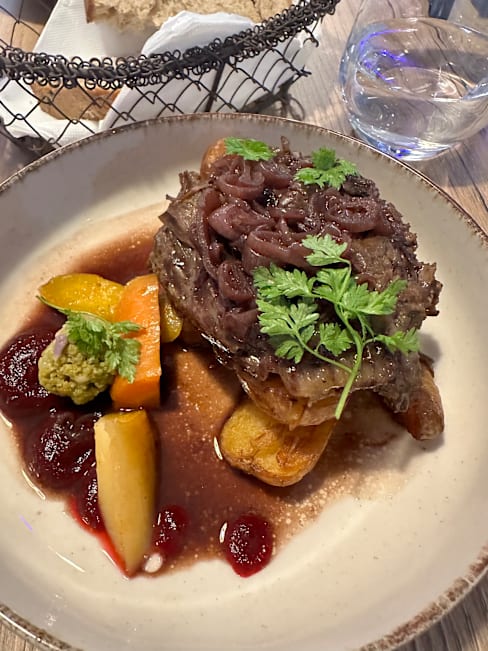 6.5/10I booked this based on reviews and I was disappointed. The service was very good, the food was good, but the ambiance was really poor. This restaurant is in the courtyard of a hotel which I didn't realize. I thought it was a stand alone hotel. The courtyard was quite large with limited tables so the young children at multiple tables treated it like. a playground. Screaming children running around my table the majority of the dinner. It felt more like being at a park then a restaurant charging a tasting menu. As soon as I walked back outside from the hotel courtyard the I was immediately disappointed I had not booked at any of the restaurants with outdoor tables along the square. The food was good but not great and I had to ask for the glass of red wine I had ordered to go with my main. I think it's fine to have it casual and cater to hotel guests but they may need to adjust their menu to better fit the ambience
