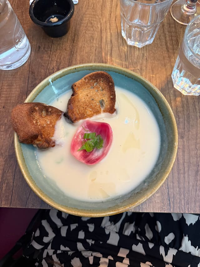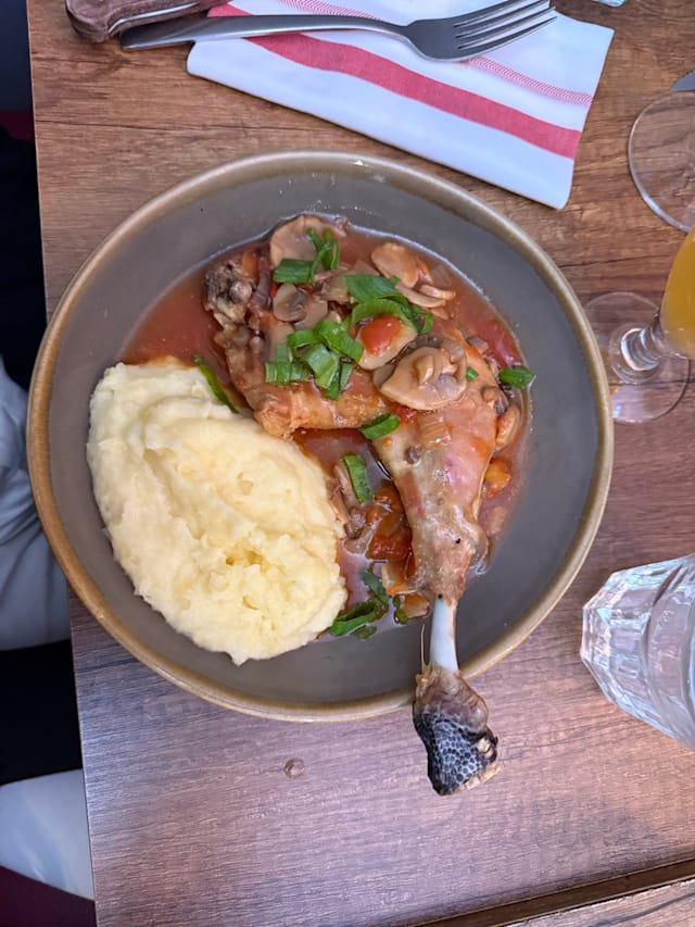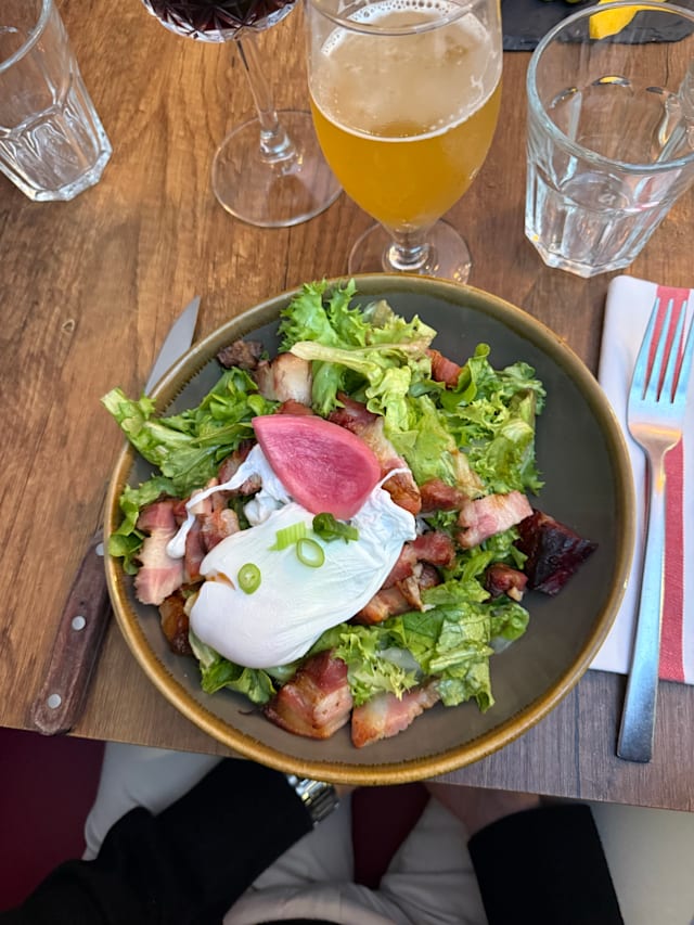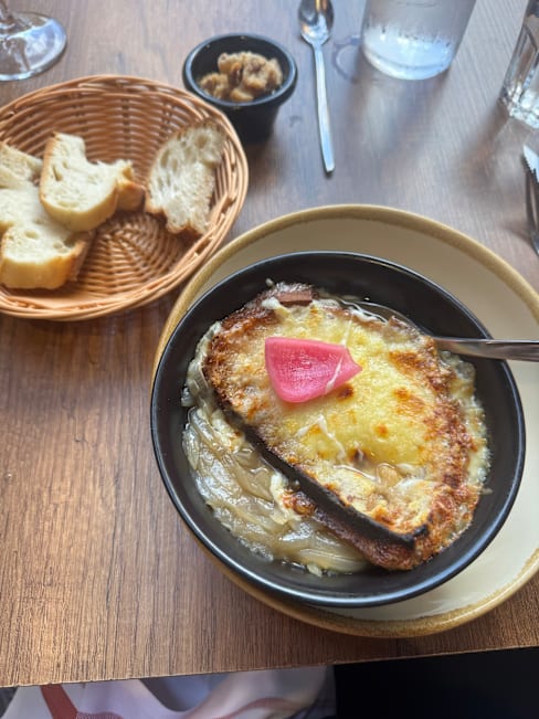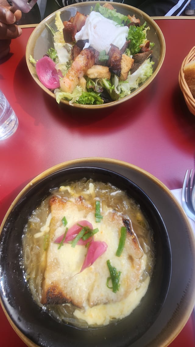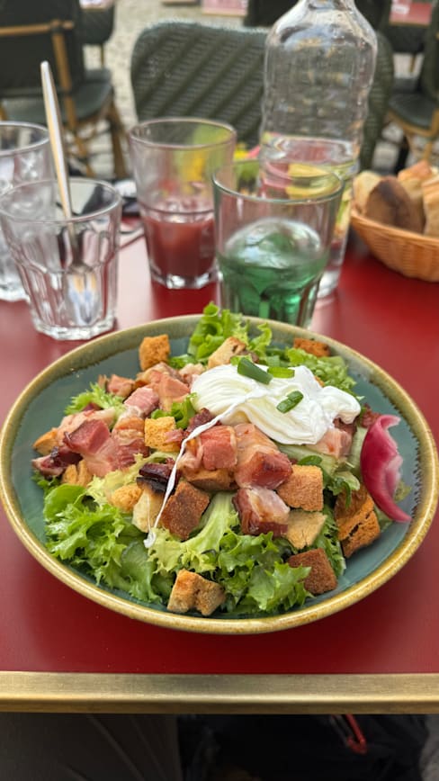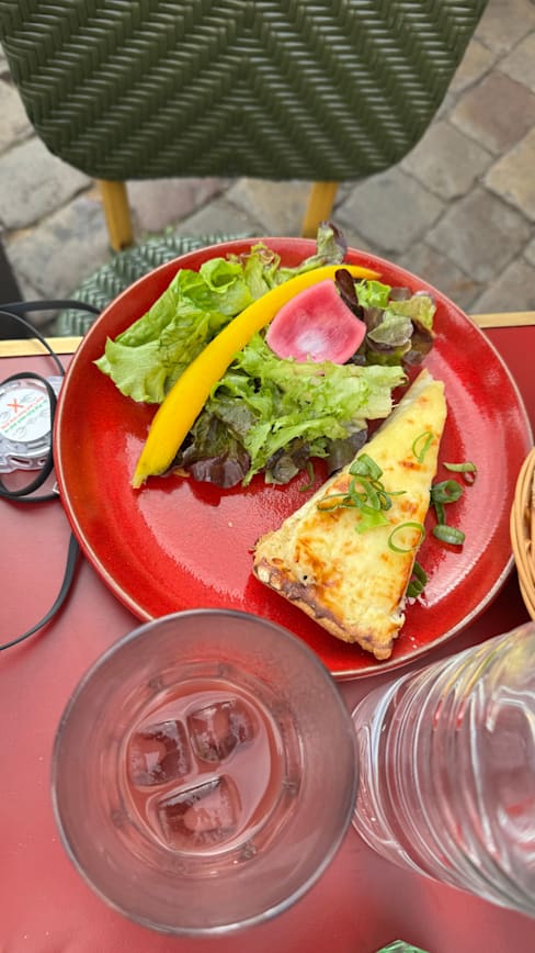10/10To eat at the foot of the cathedral was such a vibe! It was peaceful with the bells tolling every once in a while. The food was light, satisfying, and delicious! We had the salade lyonnaise, tarte à l’oignon, marinated salmon, sausage in brioche. It’s simple food with lots of salad. The waiters were attentive.