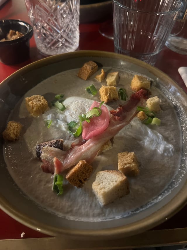 10/10It was great Lyonnaise food and the waiter that served us was incredibly attentive and also was great at recommending wine. The rest of the staff was terrific. The interior is beautiful with old world beams on the ceiling and a nice ambience. And it was open on Sunday, which was great