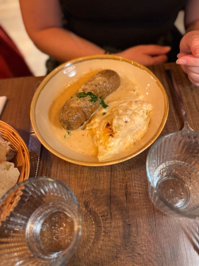 3/10We read a few good reviews of this bouchon in Lyon. We wanted authentic Lyonaise food, so I tried the quenelle de brochet, it was just too over cooked and dry- quite disappointing. The worst part of our evening- the screaming Manager rushed to our table ! What was our offense? Placing some chicken bones in the bread basket! Our kind waitress removed all of our dishes, including the messed up basket, as we awaited our dessert. Well, the Manager gestured to bring it right back to the table. We saw her actions and anger. My husband said to remove it & the scared waitress couldn’t. Manager came to us & screamed in front of everyone in French… to no understanding of us English speaking tourists. All this over a cheap small bread basket- a mistake on his part, as my husband pointed out. I don’t care to worry if she was having a bad night- this was the worst treatment I’ve ever seen toward a customer! Don’t go there
