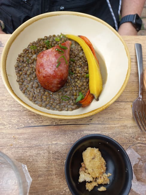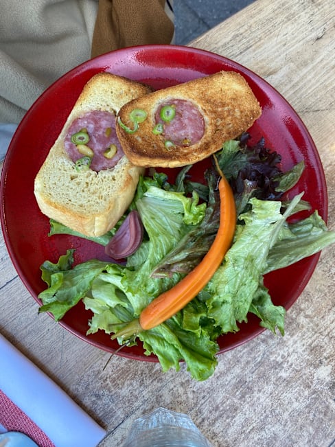 10/10To eat at the foot of the cathedral was such a vibe! It was peaceful with the bells tolling every once in a while. The food was light, satisfying, and delicious! We had the salade lyonnaise, tarte à l’oignon, marinated salmon, sausage in brioche. It’s simple food with lots of salad. The waiters were attentive.