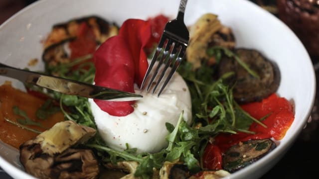 Légumes grillés du soleil et sa burrata entière di Buffala sauce pesto