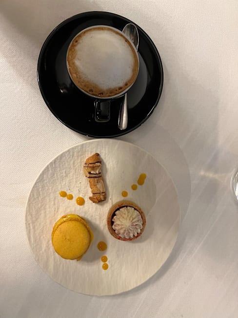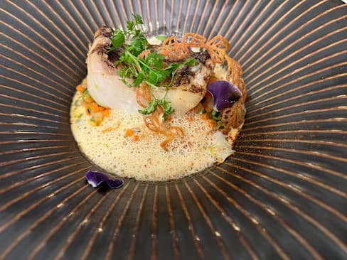 10/10+4Exquisite 6 course menu. Gorgeous presentation, well balanced sauces and delightful course of fish including seabream and birch as well as expertly prepared free range chicken. Service was responsive, friendly and knowledgeable. Spacing was well placed and lighted, creating a cozy overall atmosphere.