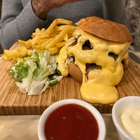 9/10Nice place for lunch. Interesting burger, very unique and a lot of cheese ! But a tad cold. Otherwise very good!