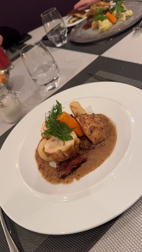 10/10Outstanding service and delicious food. The owner does not speak English but speaks a bit of German. So, we managed it in German at the beginning. Later, they asked a waitress who could speak English to help us with the ordering. Do not hesitate to tell them if you have any food allergies. They will try their best to work something out for you. I have egg allergies, so the chef made changes to my meals, like substituting the mashed potatoes (which contained eggs) with vegetables. The chef made me also a special dessert because all of the desserts on the menu consist of eggs.