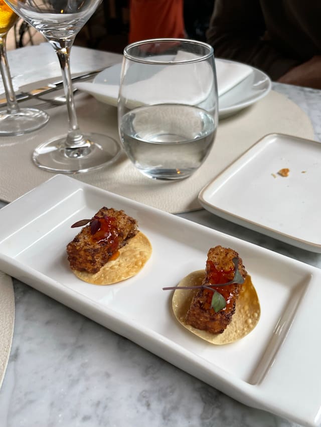 8/10Nice food in pleasant atmosphere We had dinner inside and my wife enjoyed cod fritters and thai mussels as starters. There after nice lamb maindish Wine by the glas ( rioja and verdejo ) excellent Pleasant service