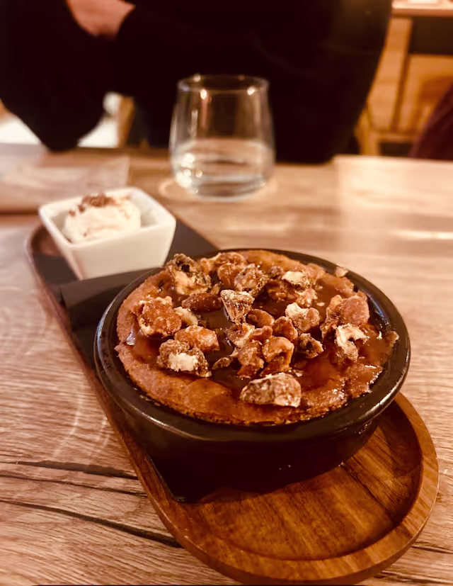 - Cacahuètes et noisettes caramélisées caramel beurre salé, crème montée vanille