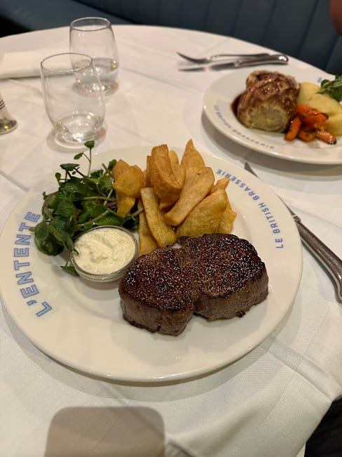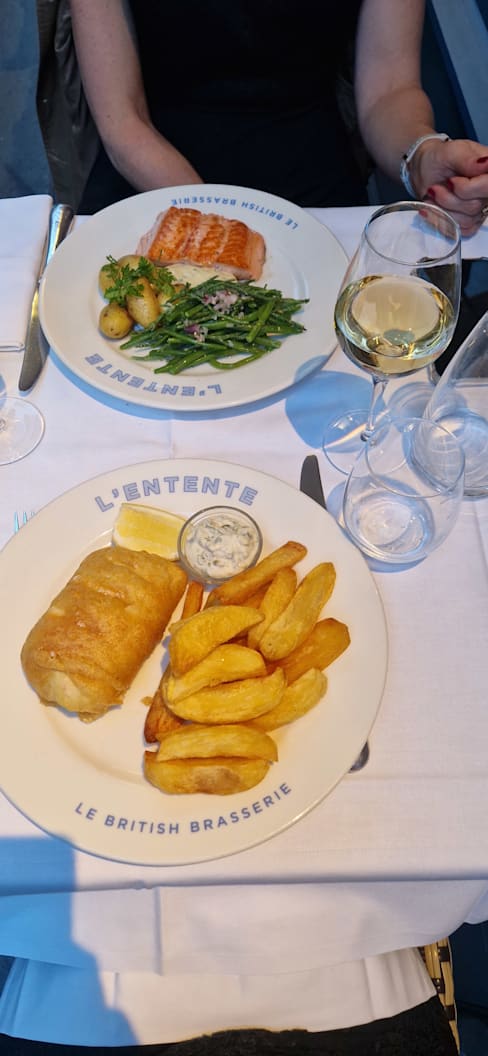 10/10+2"L'Entente" is a small British brasserie comfortably located in the centre of Paris, close to many iconic places of the city. The brasserie (not a "classic" British pub!) is a cozy and "sympa" restaurant, who serves many British dishes, coupled by French wines. The staff is friendly , professional and very kind; English and French are both "accepted" as languages. Among the selection of food, the "Fish & chips" is an iconic dish that should be tasted; there are other traditional British dishes (salmon, oysters , pies...). Weekend brunches and Sunday roasts are also interesting options. The environment is warm but not too formal, and everything is decorated with care and attention. L'Entente also is available for external catering. I had several lunch and dinner in this brasserie, and I have always found tasty food, a warm atmosphere and a kind staff. Some options can be a bit expensive, but we should remember that the brasserie is in the center of Paris. Anyway, sometimes there are