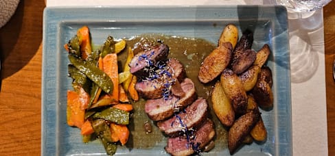 10/10Delicious food! We found this restaurant only because of The Fork and were glad we did. Portions were generous and each of the elements of dinner were cooked perfectly. It's my understanding that it's a family-owned and operated restaurant and they care about all aspects of the meal. Their wine selection (visible behind a glass wall) was extensive. We thought the price was reasonable, especially when compared to what we'd been paying in Switzerland.