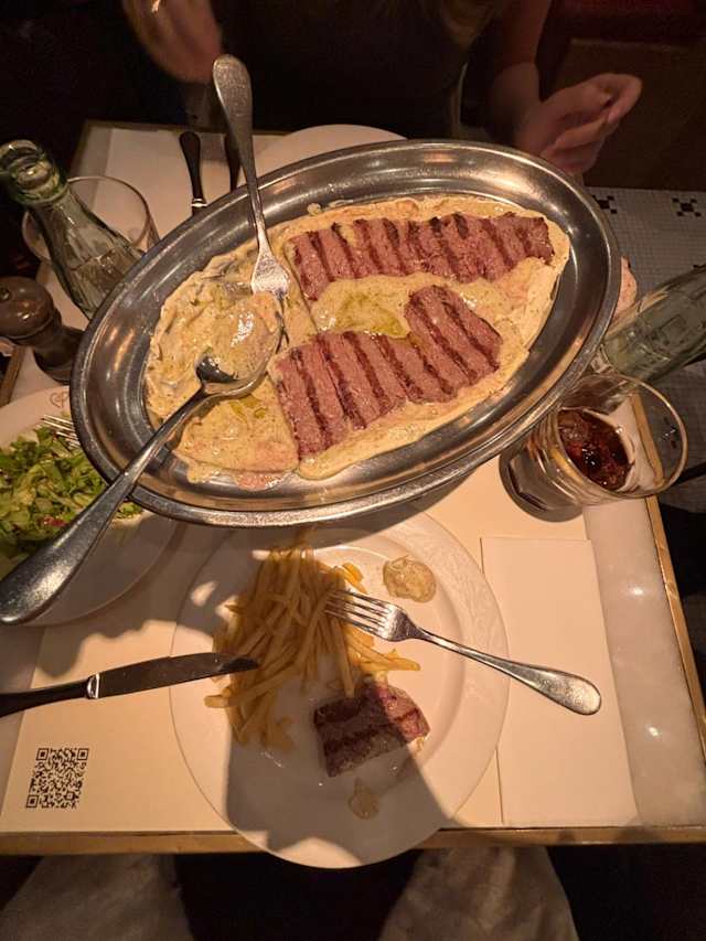 7.5/10The service was not that good. The food is limited to the salad,steak and fries as known but we have waited a lot to get some more fries.They were served after the meal was finished