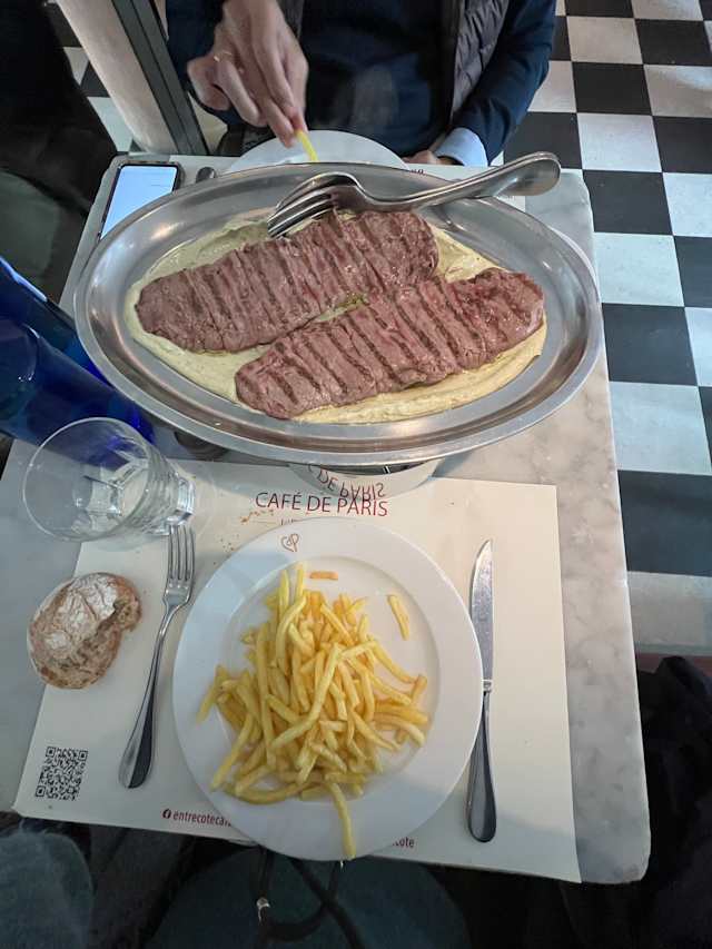 7/10Service was good, the waiter was very polite and the atmosphere was also nice in the outdoor area. The quality of meat was not the best, and the steak came almost raw where we had to wait for it to cook rather than receiving the steak medium as ordered and waiting for the sauce to heat up. I was disappointed from entrecôte Madrid compared to the likes of the same franchise in London and Paris. Felt like the quality was completely different, and that the steak should have been better quality and the sauce should have been more than what was provided.