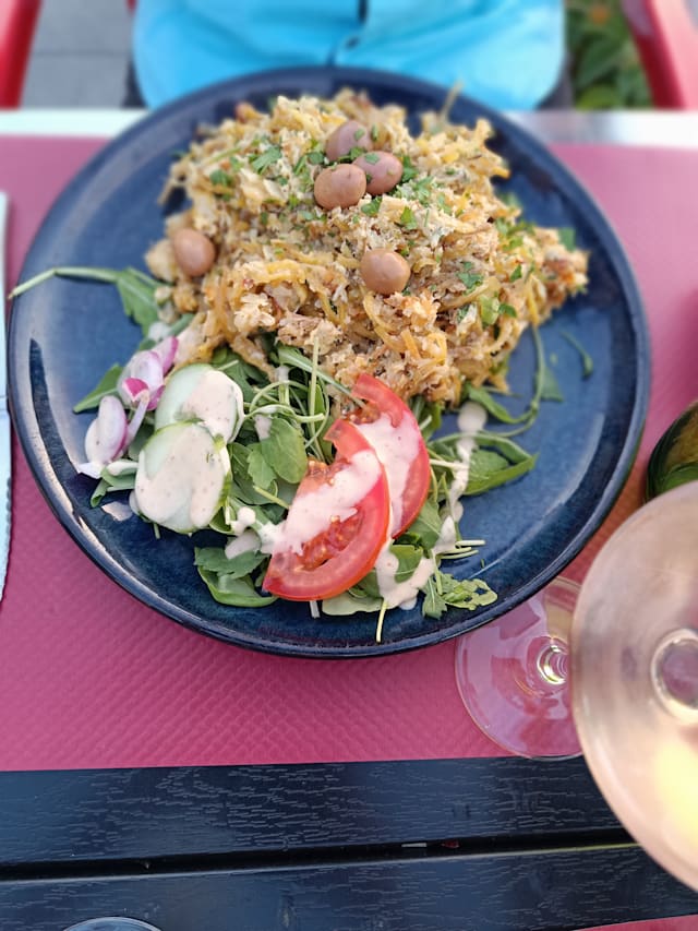 Salade, saumon fumé, crevettes, chair de crabe sauce vinaigre balsamique
