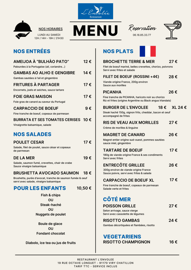 Yes, L'Envolée has availability on TheFork currently. Do not hesitate, reserve your table on TheFork!