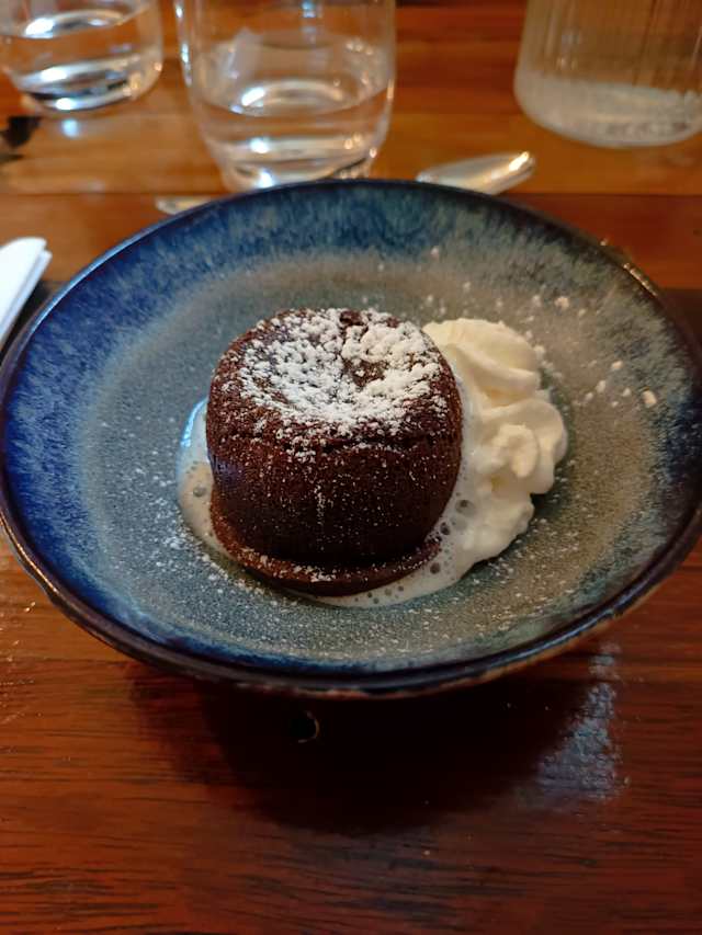 - Poire pochée à la cardamone, fruits d’automne et financier au chocolat