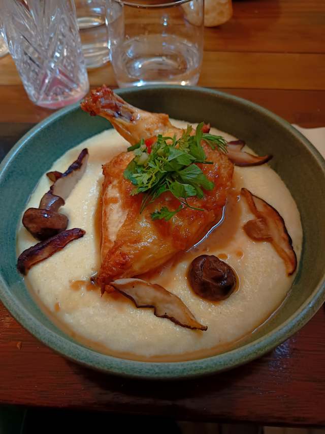 - Suprême de poulet, crème de châtaigne et ses linguines