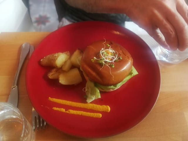 4/10Long wait for food, then tells us that burger is not available. The vegetarian has only bun, sauce and salad.