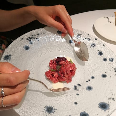 4.5/10Food is generally ok good though towards the salty end. Liars tortellini was a blast. Service is worst ever we’ve experienced at a one starred restaurant (racist at Asian? Or simply becos we didn’t order wine?). Asked server about the tasting menu, literally no info given except there’s fish and meat, nor even about composition of starters, first pasta courses, desserts etc. Cutleries almost thrown at our seats on table. Ordered pigeon which was served by our table but the cutting by the server was bad with bits of meat cut off and continued to be served on my plate. Sauce poured off at the serving table and then messed off when fetched to my seat. My son went for washroom and the main course continued to be served for the entire table, including the beef for my son at an empty seat.