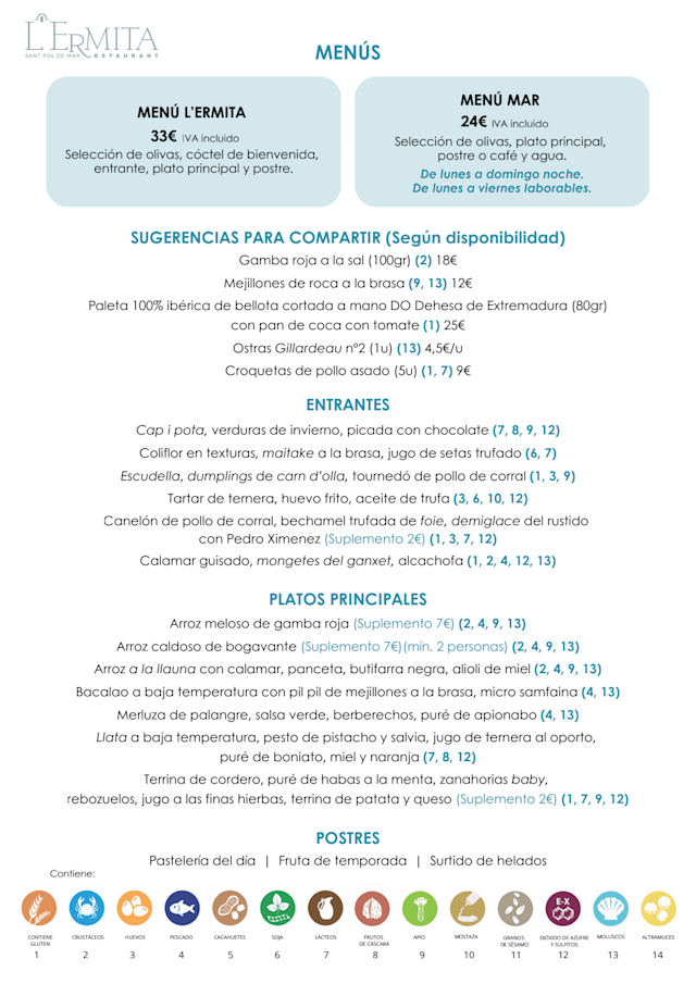 10/10Food was wonderful and excellently presented, we were very grateful for the English translation of the menu and the staff were helpful, polite and friendly. We are very happy to recommend L’Hermita, we all had a very enjoyable meal, thanks to the staff!