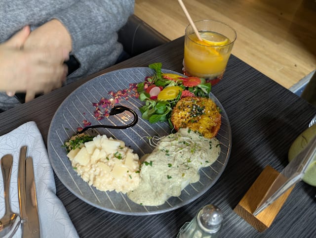 - VG : Risotto aux Cèpes et Panais , crème au Brie et salade