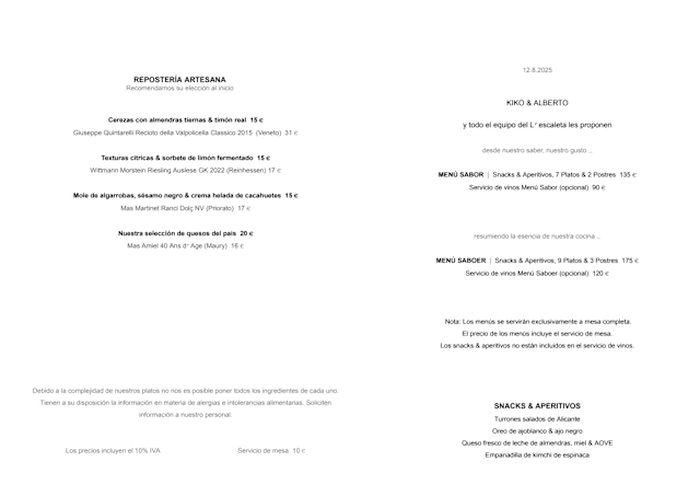 10/10The creative and original dishes are all fantastic. The whole team - from the co-founding chef and sommelier, to Andres, and the entire team - are extremely talented knowledgeable, friendly, and provide the best experience. We go whenever we are in town or nearby, and we are thrilled to invite friends and family to join us in such a great culinary experience. I can’t recommend L’Escaleta more highly.