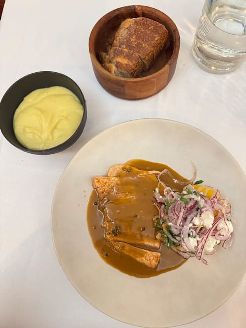 9/10Bright ambience, excellent service, and the food is of good quality with large portions at a reasonable price (two dishes are enough to fill you up!). The only aspect that can be improved is that the bread wasn't fresh.And theydidn’t ask about the doneness when taking the order, so the lamb and fish were a bit undercooked for my friend—though it was right for me. Overall, it’s highly recommended.