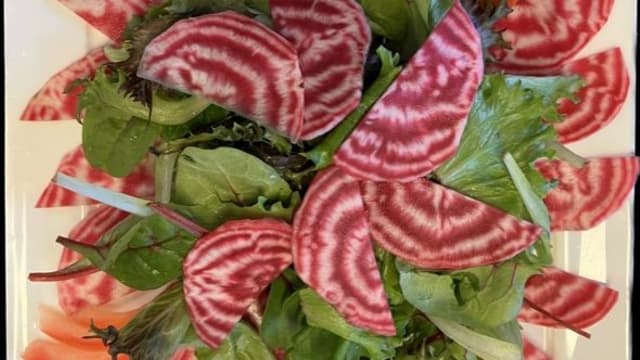Rampon, noix de macadamia, croûtons et mini tomme poêlée