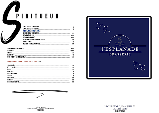 Le menu de l'esplanade€38 per guest