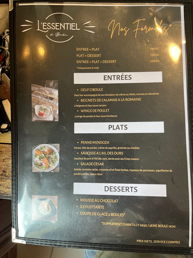 Explore the chef's selection menus with diverse dishes at fixed prices. Some are bookable via TheFork, while others are available onsite.