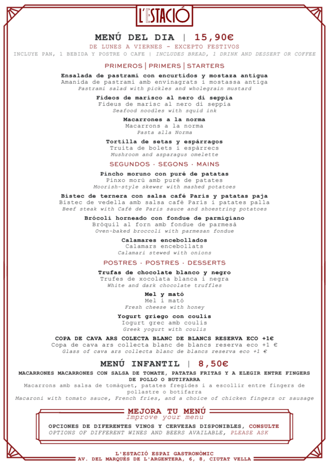 Menu del dia€15.9 per guest