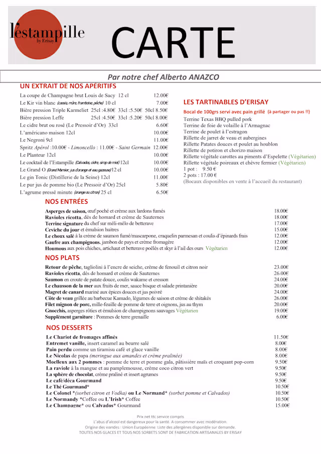 10/10Very well presented and homemade cooked food. Delicious mixture of vegetables everthi'g was perfect right down to dessert Count 50 euros a head but there is a menu for 27 euros delicious too