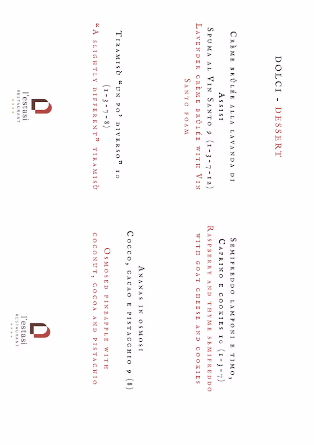 Although the food was very good, I was somewhat disappointed by the ambiance and service. Small children running around the restaurant were not what I expected. Had I known this was a family restaurant, I would have approached dinner differently. I was disappointed in the service when I ordered coffee and dessert and received my coffee so far before dessert that I had to drink it before it was completely cold while still waiting for dessert. When dessert finally arrived, I ordered another coffee. It would have been nice for the staff to recognize the delay in dessert and time the coffee and dessert together. Compared to other experiences in Assisi, I will not return to L'Estasi.