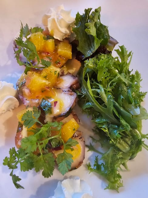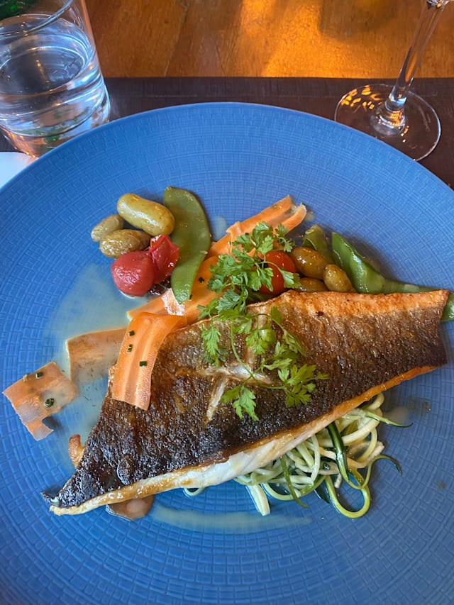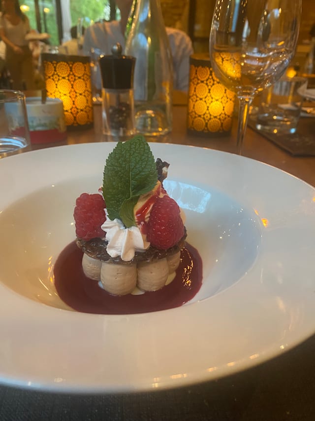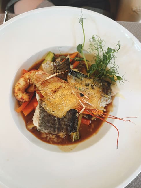 9/10The ambiance was fantastic, just a beautiful room adjoining the gardens. The pressé des poulpes (pressed octopus) was the best dish, the bar (sea bass) also very good and well prepared. Our waitress recommended a most enjoyable Rosé, the Chateau la Canorgue, from the Luberon.
