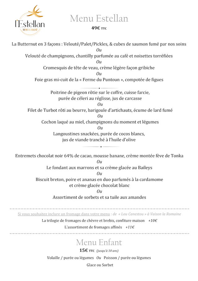 10/10This was our second time at l'Estellan and it was just as good as we remembered. The meal was stellar and the service was exceptional. The tataki de taureau was delicious.