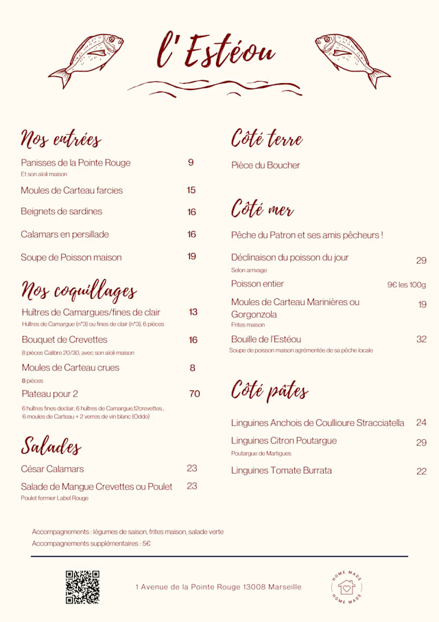 FrenchMediterraneanEuropeanBirthdayBrasserieContemporary cuisineDesignFrom marketGood for a business lunchGood for familiesGood for groupsGreat viewLunchOceanfrontOsteriaOutdoor diningRomanticSeminarWaterfrontWith friendsChristmas and New YearNew year's eveVegetarian dishesAmerican ExpressChildren's menuDog-FriendlyWifi