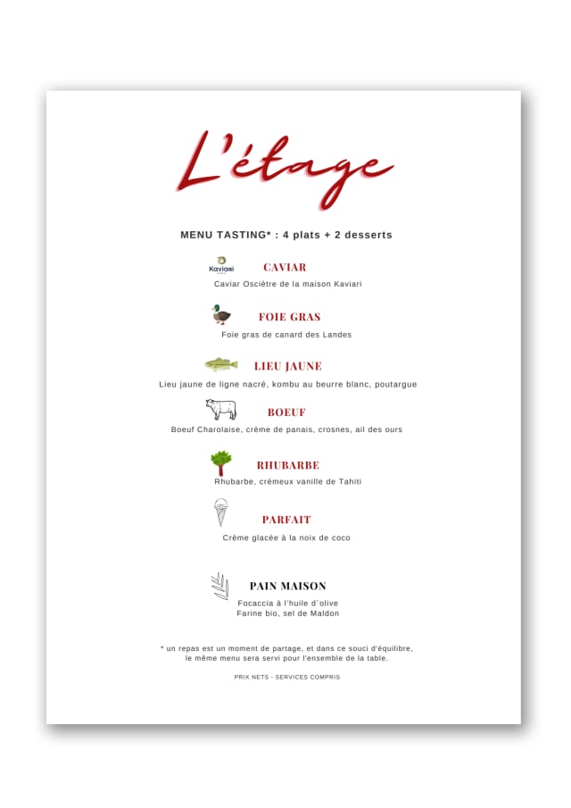 10/10We had a lovely and special evening at L'Etage. The food was beautifully presented and delicious. The wine list was thoughtful and excellent. The service that Guillaume and his team provided was exceptional. We recommend L'Etage without reservation to anyone who is looking for a truly Lyonnaise dining experience!