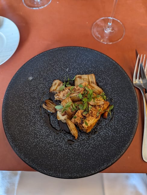10/10Tiny restaurant run by the 2 chefs with a fixed menu. The chef spends time at each table explaining the dishes and getting to know the guests. Each course was thoughtfully prepared and wonderful. Layers of flavors. The Veal dish was cooked to perfection. Highly recommend booking a reservation.