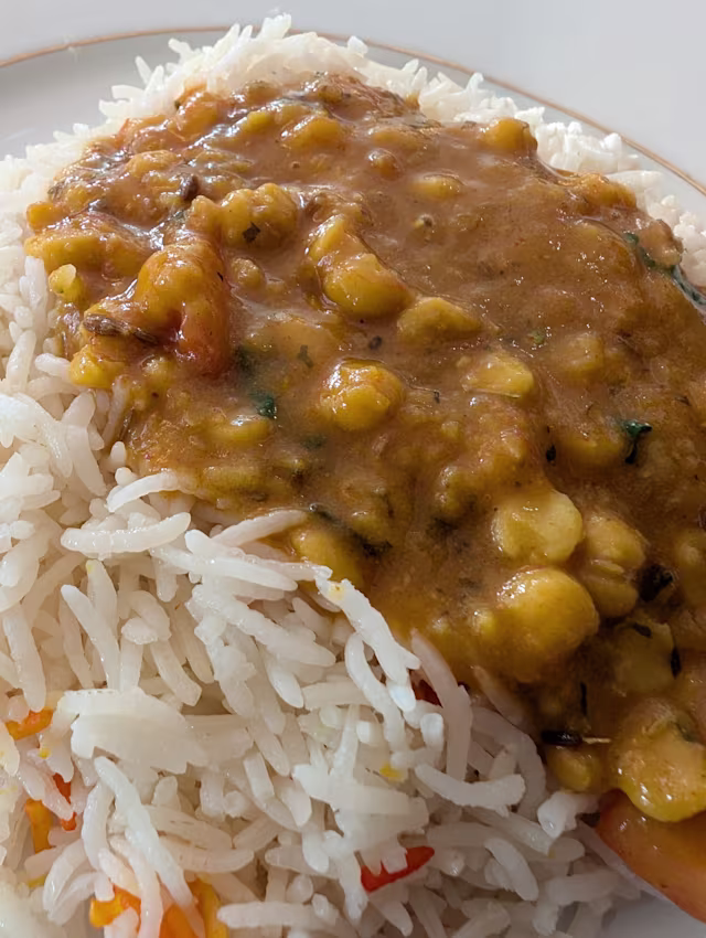 - (Lamelles d'agneau en sauce curry et pomme de terre)