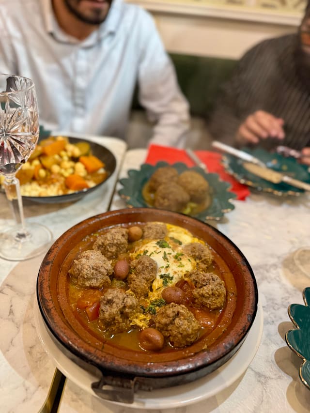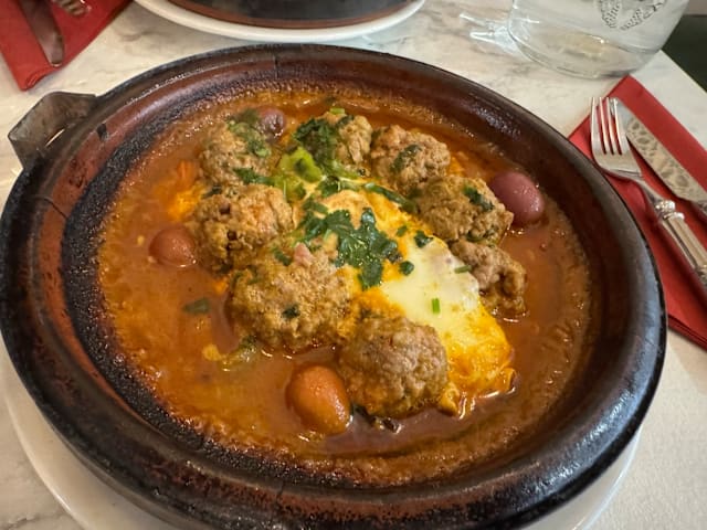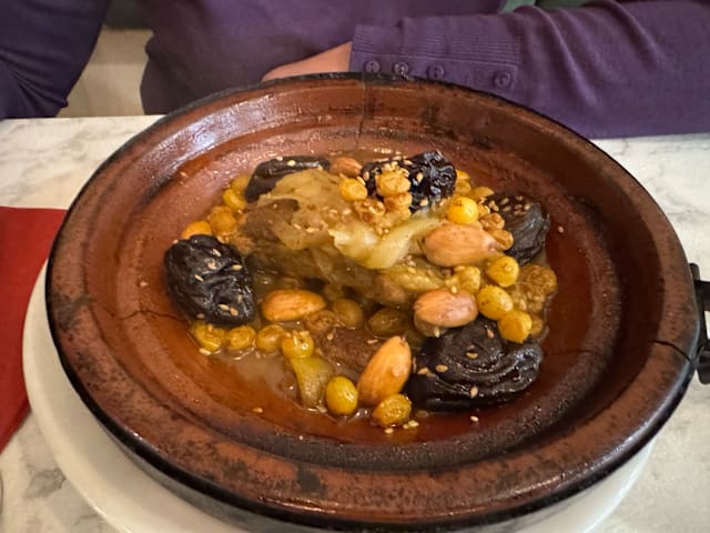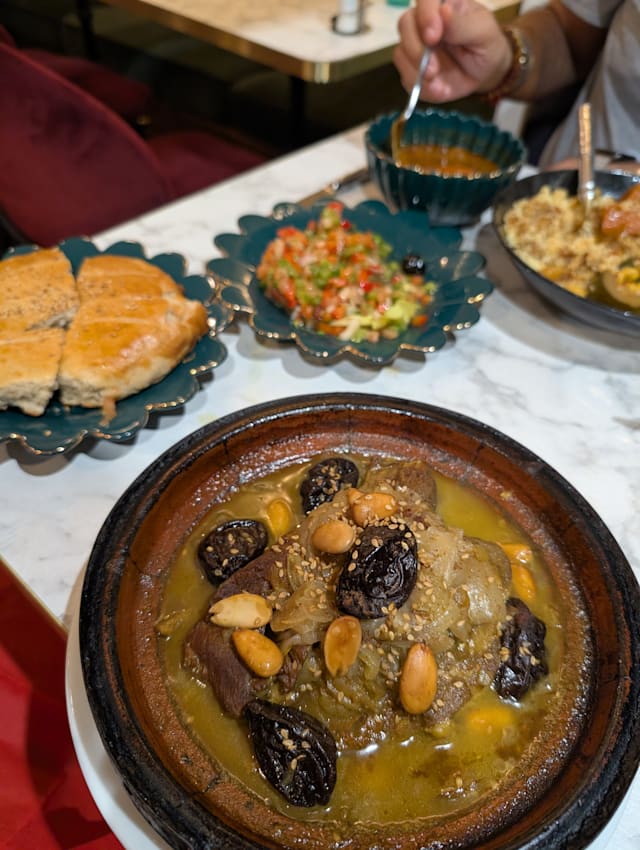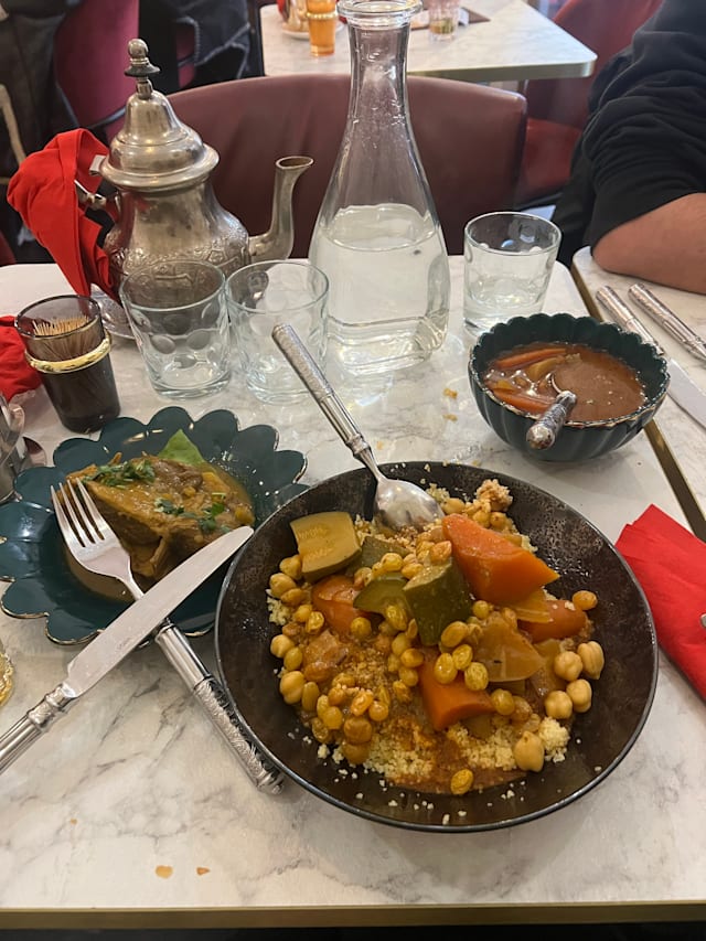 8/10Went for dinner, 2 of us. We ordered the Vegetarian Cous Cous, Lamb Tangine Prunes & Almond and the Morrocan salad. The Lamb Tangine was very solid - 10/10. The Morrocan Salad was very underwhelming, it was minced vegetables and calling it a salad would be a compliment. The cous cous was very mediocre - very dry and lacking a profile - 6/10. There was only 1 server at the restaurant so be prepared for a little wait