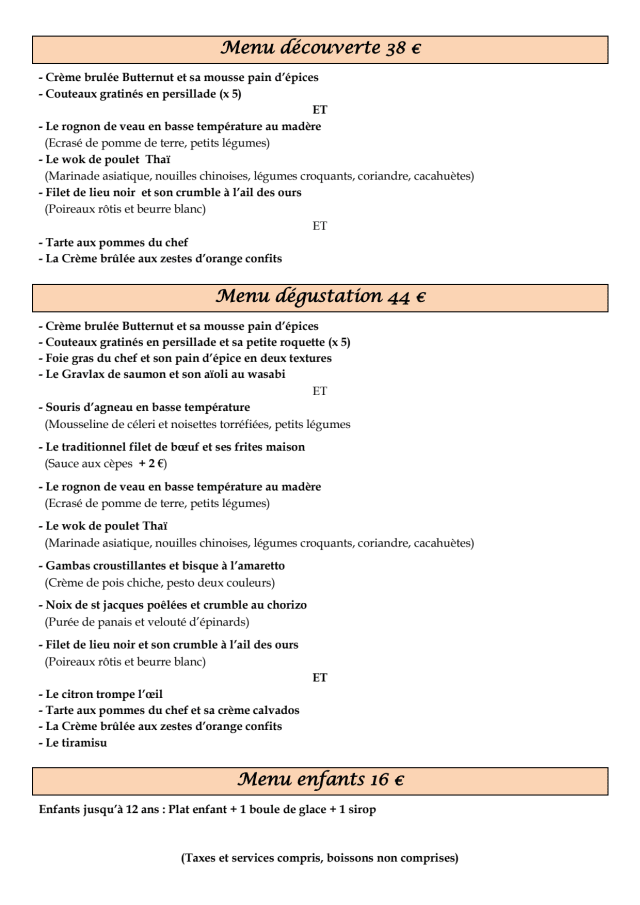 Menu dégustation€44 per guest