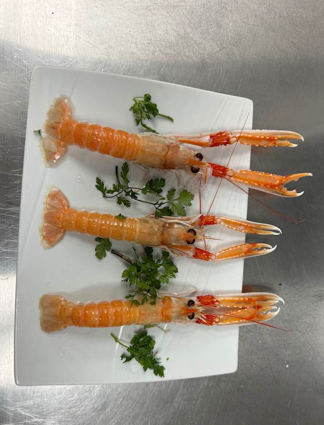 - Linguine et ses langoustines róties, sauce aux crustacés et herbes fraiches.