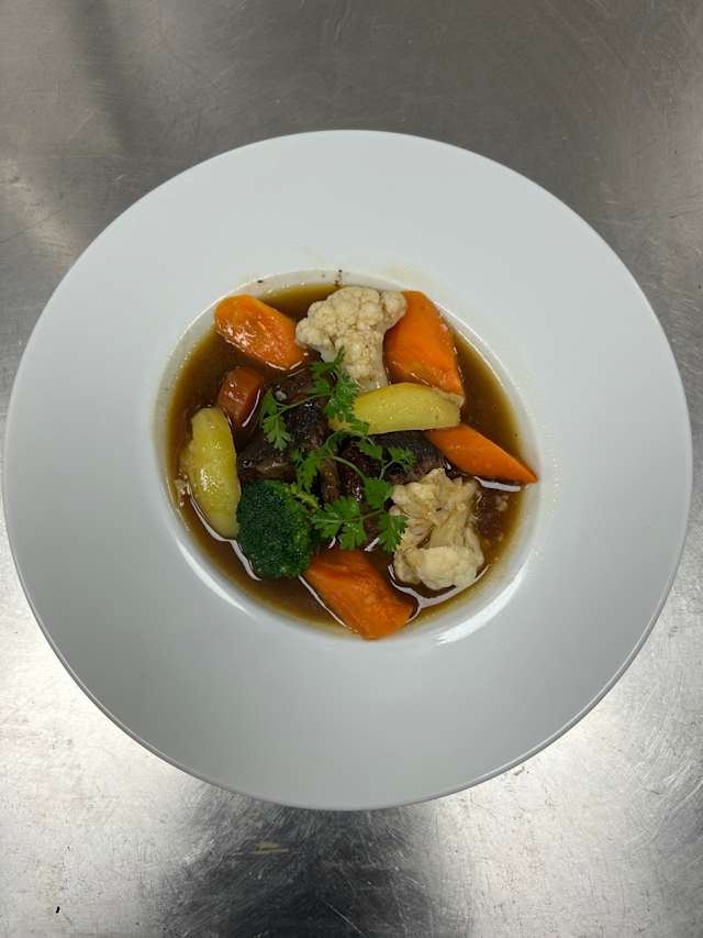 - Mijotés avec des légumes racines dans une sauce veloutée au vin blanc et aux herbes fraiches. Riz.