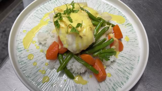 - Filet de cabillaud pané, frites maison sauce béarnaise